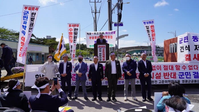 [남악=황승순 기자]전라남도의회 기획행정위원회 박원종 의원(더불어민주당, 영광1)이 한빛원전본부 정문에서 26일 고준위핵폐기물 영광군 공동대책위원회(위원장 임영민)가 진행한 건식저장시설 반대 군민 결의대회에 참석해 영광군 300여 명의 기관사회단체 관계자 및 군민들과 뜻을 함께했다.