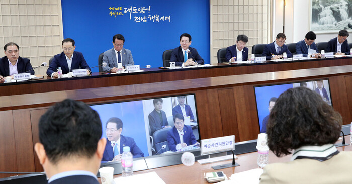 | ▲ 김영록 전남도지사가 전남 실국장 정책회의를 주제하고 있다.(출처=전남도) |