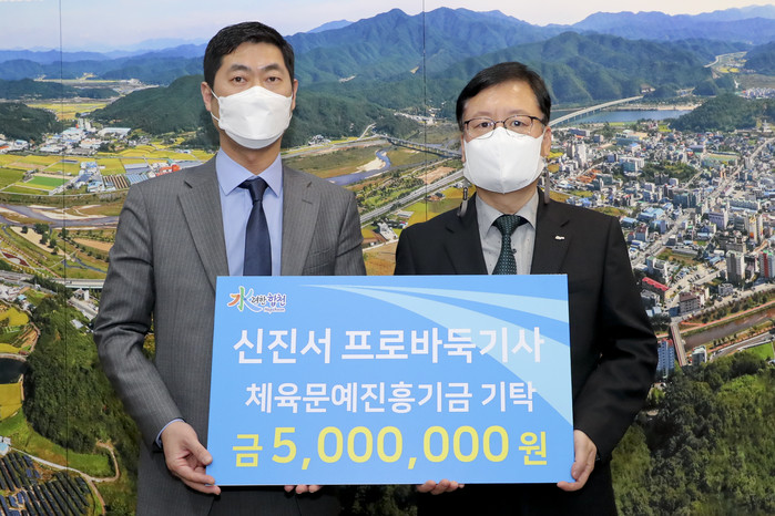 이선기 군수 권한대행은 “코로나19로 힘든 시기에 세계적인 선수가 합천군에 큰 선물을 주셔서 감사드린다”면서 “기탁하신 체육문예진흥기금은 내실 있는 사업을 추진하여, 합천군의 체육분야가 더욱 빛을 볼 수 있게 최선을 다하겠다”고 감사의 마음을 전했다.
