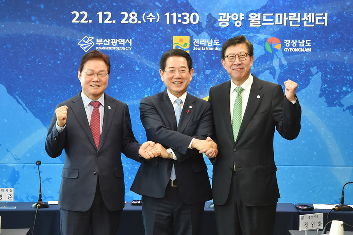 [부산=조병선 기자]부산시는 전라남도, 경상남도와 함께 남해안 3개 시‧도의 글로벌 관광 거점 조성과 협력 체계를 구축하기 위해 12월 28일 오전 11시 30분 광양 월드마린센터에서 3개 시·도지사가 참석한 가운데 「남해안 글로벌 해양관광 벨트 구축을 위한 상생 협약식」을 개최했다고 밝혔다.