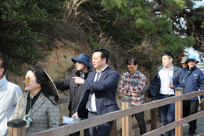 이날 의원들은 해양수산과 관계자의 현황 보고를 시작으로 선착장, 방문객센터, 숲체험장, 탐방데크 등 현장을 돌아보며 추진 현황을 살피고 개선 방안을 논의했다.