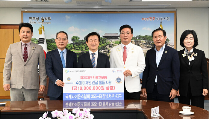 국제라이온스협회 355-E(경남서부)지구(총재 백인구)는 지역 내 돌봄 사각지대 아동 과 수해 피해 주민을 돕기 위해 1000만 원 상당의 물품을 진주시복지재단(이사장 이성갑)에 기탁했다.