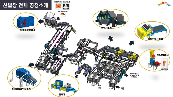 특히 광학선별기는 근적외선과 가시광선을 분석해 재질과 색상을 감지 후 유색 및 투명 PET, PE, PS, PP 등의 플라스틱을 선별하는데 탁월한 성능을 갖췄다. 전체 공정에 있어서는 IIoT(Industrial Internet of Things)센서와 엣지컴퓨터를 통해 데이터를 수집 후 이를 분석하여 운영하는 시스템 자동화가 마련됐고, 수집된 정보들은 서버DB로 연동 후 빅데이터를 분석하여 최대처리용량을 구현한다.