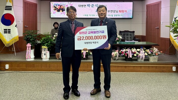 한편 박준식 대병면장은 1987년 7월 10일 합천군 대병면에서 공직생활을 시작해 농업유통과장, 민원봉사과장, 봉산면장 등 주요 부서를 두루 거치며 2022년 7월 대병면장으로 발령받아 대병면에서 37년간 공직생활을 마무리했다.
