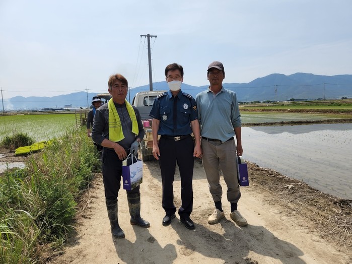 ○ 지난 6. 2일 신속한 대처와 노력으로 집을 나가 돌아오지 않고 있던 실종 치매노인(박00, 여 74세)이 초계면 대암산 활공장 앞 논바닥에 헤매고 있는 것을 발견해 소중한 인명을 구조한 초계면 거주 배00(남 58세),설00(남 57세)에 대해 농번기임을 감안해 농사현장에 직접 방문하여 감사장을 전달하였다.
