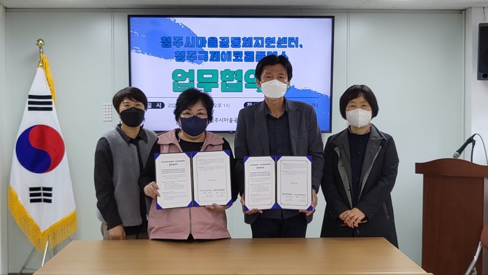 청주시마을공동체지원센터(센터장 변지숙)는 지난 25일 주민주도의 마을공동체를 만들고, 마을에 환경교육 활성화를 위해 청주국제에코콤플렉스(관장 김경중)와 업무협약을 체결했다.