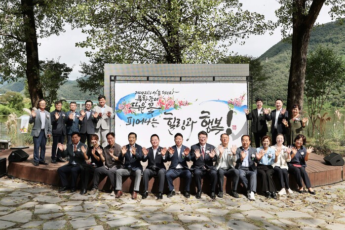 ‘북한강에 띄운 꽃 피어나는 힐링과 행복’이란 주제로 열린 이날 개막식에는 서태원 군수를 비롯해 김경수 가평군의회 의장과 군의원, 임광현 경기도의원, 기관‧단체장, 지역주민 등 100여명이 참석해 축제를 축하했다.