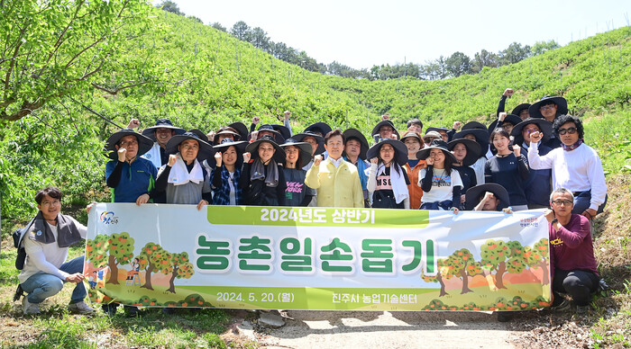 시는 농촌 지역 인구감소와 고령화로 인해 인력 구하기가 어려운 농가를 찾아 일손돕기를 지원함으로써 적기 영농 실현으로 농촌에 활력을 불어넣고 있다. 진주시 관내 고령·장애·부녀자·독거 등 소외계층 농업인을 대상으로 과수·밭작물 등 수작업 인력이 많이 필요한 농가를 우선으로 선정하여 일손돕기를 진행하고 있다.