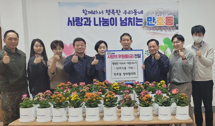 최혜강 만호동장은 “소외된 이웃들의 마음까지 살펴주신 만호동방위협의회에 감사드린다”며, “반려식물 키우기를 통해 주민들의 마음 건강이 더욱 튼튼해지길 기대한다”고 말했다.