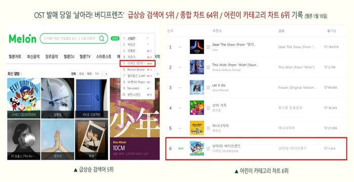 한편, 애니메이션 '거멍숲을 지켜라! 버디프렌즈' OST는 세븐틴 디에잇 외에 세븐, 김태우, 나태주, 제이유 등의 정상급 가수들이 대거 참여해 눈길을 끌었다.