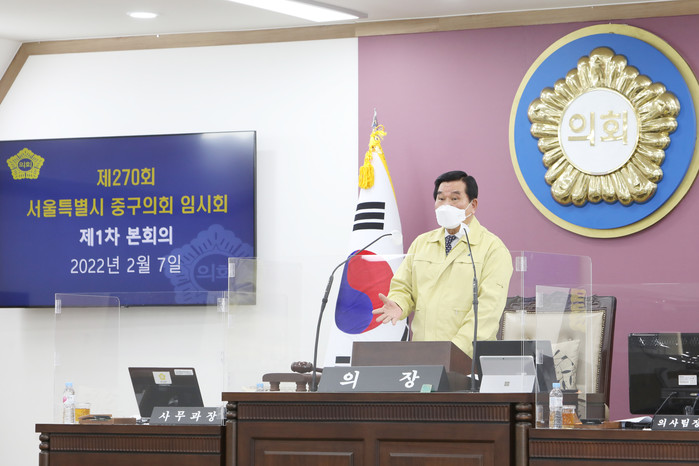 [시민일보 = 여영준 기자] 서울 중구의회(의장 조영훈)가 오는 11일까지 총 5일간의 일정으로 제270회 임시회를 열어 구정질문 및 조례안 심사를 진행한다고 밝혔다.
