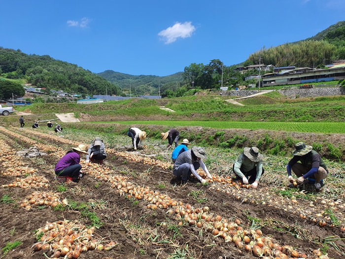 합천군 상하수도과(과장 최규진)는 지난 16일 양파 수확기를 맞아 봉산면 양지리의 양파재배 농가를 방문해 농촌 일손돕기에 나섰다.