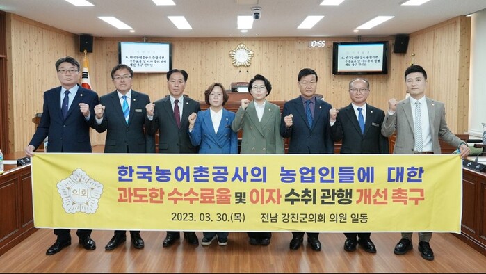 [강진=정찬남 기자] 전남 강진군의회(의장 김보미)는 30일 열린 제289회 임시회 제2차 본회의에서 정중섭 의원이 대표 발의한 ‘한국농어촌공사의 과도한 수수료율 및 이자 수취 관행 개선촉구 건의안’을 만장일치로 의결하고 정부와 한국농어촌공사에 강력하게 건의했다.