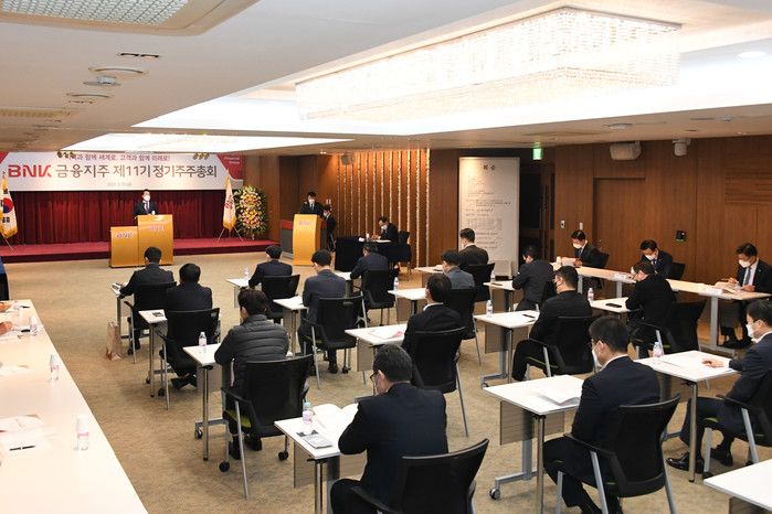 | ▲ 정기주주총회 진행 모습.(사진제공=BNK금융지주) |