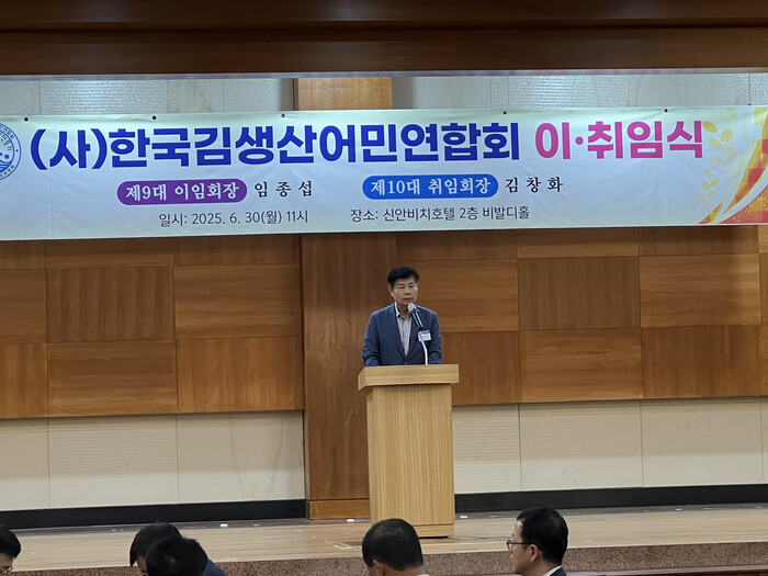 이날 행사에는 해양수산부 관계자를 비롯한 김 생산 어업인 200여 명이 참석했으며, 제9대 임종섭 회장의 이임과 제10대 김창화 회장의 취임을 축하하는 자리로 마련됐다.
