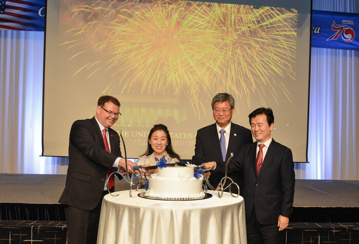 조규일 시장은 건배사에서 “미국독립기념일 247주년을 축하한다”면서 “인간존중의 진주 K-기업가 정신이 21세기 인류의 새로운 가치를 창출하고 더 나은 내일로 가는 희망의 사다리가 되어 줄 것”이라며 미국과 대한민국의 기업가정신을 위한 건배를 제안했다.