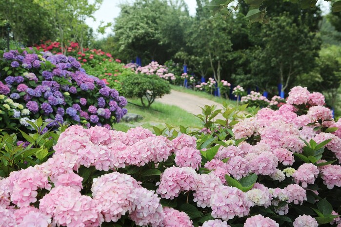 수국축제장에는 마이크로필라, 산수국, 목수국 등 100여 종의 1004만 송이 수국이 피어 관광객들에게 다채로운 수국의 아름다움을 선사했다는 것.