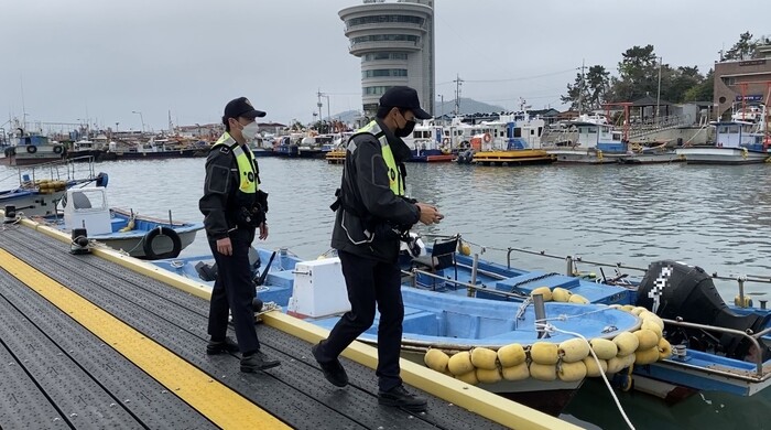 | ▲ 목포해경이 진도군 서망항에서 안전순찰을 실시하고 있다(출처=목포해경) |