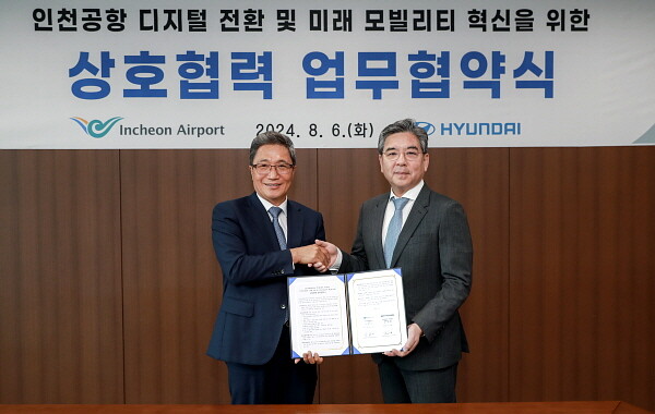 [인천=김형만 기자] 인천공항공사는 6일 공사 회의실에서 현대자동차와 ‘인천공항 디지털 전환 및 미래 모빌리티 혁신을 위한 상호협력 업무협약’을 체결했다고 밝혔다.