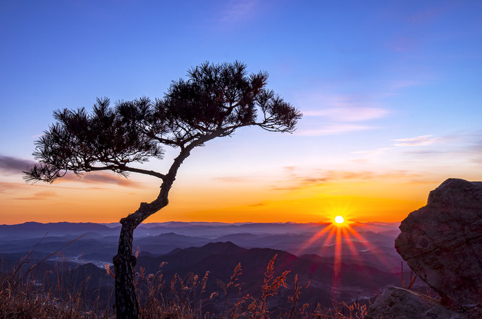 합천군 오도산에서 바라본 일출장면이 호랑이해의 장엄함과 빼어난 절경이 어우러져