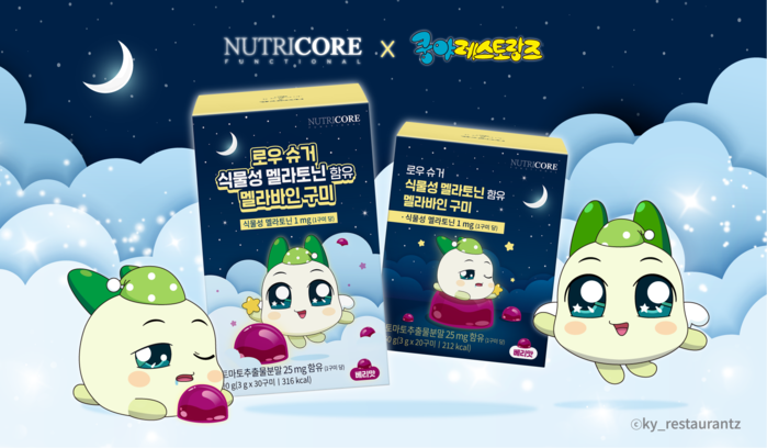 넷마블에 따르면 이번 콜라보를 통해 뉴트리코어 ‘로우 슈거 식물성 멜라토닌 함유 멜라바인 구미 패키지’에 쿵야 레스토랑즈의 아트웍이 반영된 신규 패키지를 선보이며 해당 패키지는 양파쿵야 인형 키링 1종이 포함된 구성이다. 관련 제품은 전국 올리브영 온라인몰과 카카오톡 선물하기에서 구매할 수 있다.