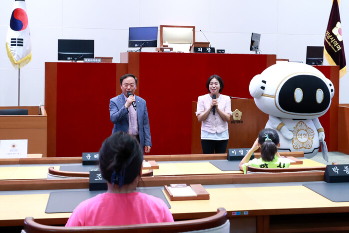 성남시의회 조우현, 추선미 의원은 이날 시의회를 방문한 어린이들에게 “비 오는 날 학교 밖으로 나와 성남시의회 견학을 하게 된 오늘이 평소어렵게 느껴졌던 지방의회와 시의원에 대해 쉽게 다가갈 수 있는 의미있는 날이었길 바란다”라고 말했다.
