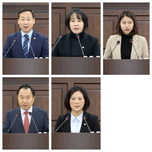 | ▲ (첫째 줄 왼쪽부터)송재천 의원, 양은미 의원, 손주하 의원, (둘째 줄 왼쪽부터) 소재권 의원, 조미정 의원. |