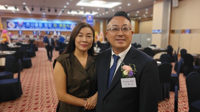 | ▲ 신임 김재웅 회장과 부인 나미라씨 께서 취임식에 앞서 포츠를 취했다.(사진=황승순 기자) |