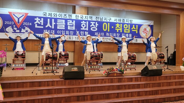 | ▲ 와이즈멘 클럽 이취임식 식전행사 타악그룹“유타(단장 유순덕)”‘난타’공연모습(사진=황승순 기자) |