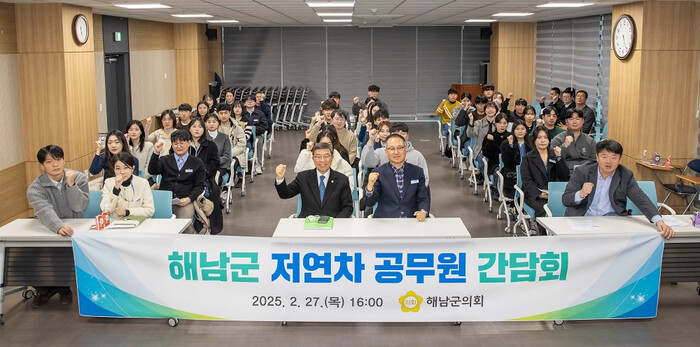 | ▲ 해남군의회, 지난 27일 해남군 저연차 공무원과의 소통을 위한 두 번째 간담회 개최 기념촬영 / 해남군의회 제공 |