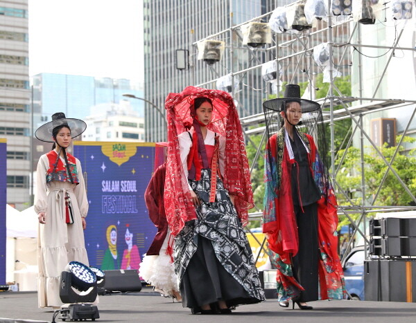 | ▲ 살람서울페스티벌 모디스트 패션쇼 무대에 리슬의 모디스트 한복이 선보여지고 있다. |