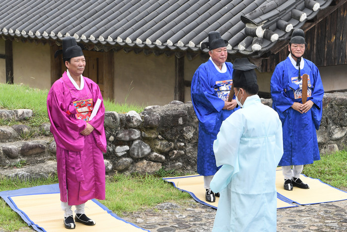 고유례(告由禮)는 경사스러운 일이 있을 때 선현들에게 알리는 의식으로, 예로부터 새로 부임한 고을의 수령이 향교에 가서 성현들께 선정을 다짐하는 행사다.