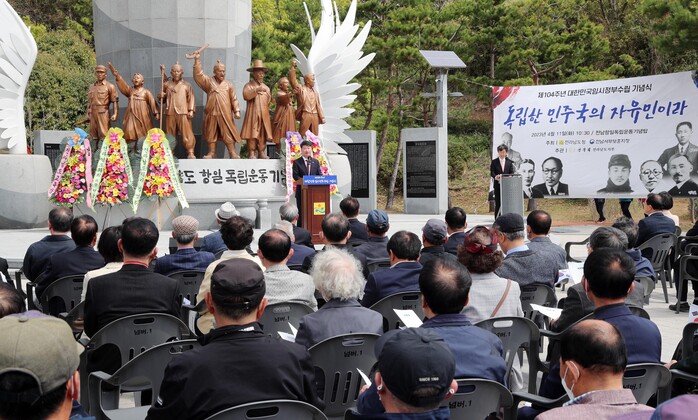 [남악=황승순 기자]전라남도는 11일 무안 항일독립운동기념탑에서 ‘제104주년 대한민국 임시정부수립 기념식’을 개최하고 민주공화국으로 시작한 대한민국의 뿌리와 선열의 정신을 되새겼다.