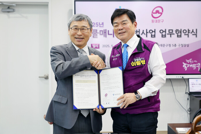 [시민일보 = 이대우 기자] 서울 동대문구(구청장 이필형)와 서울특별시교육청(교육감 정근식)은 16일 동대문구청에서 ‘스쿨매니저 시범사업 추진을 위한 업무협약’을 체결, 학교 체육시설의 주민 개방을 통한 지역사회 상생 협력체계 구축에 뜻을 모았다.