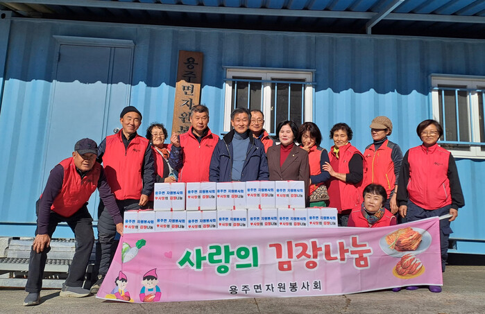 하원수 용주면장은 “용주면 자원봉사회 회원들의 따뜻한 손길과 나눔의 정신이 우리 지역의 큰 힘이 되고 있다”며 “정성껏 준비한 김장김치가 어려운 이웃들의 겨울 식탁에 작은 위로가 되길 바라며, 우리 행정에서도 복지 사각지대 해소에 최선을 다하겠다”고 말했다.