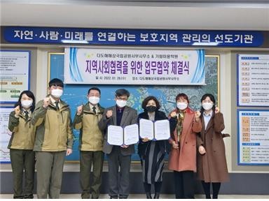 다도해해상국립공원서부사무소는 산림청 영암산림항공관리소, 목포한국병원, 목포원광한방병원, 현대삼호중공업 등과 업무협약 및 이행으로 지역사회 공헌활동, 공원자원보호, 기후변화에 대응하고 탄소중립 실천을 위한 자원봉사 활동 등을 하고 있다.