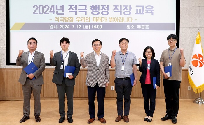 수여식에 이어 공무원과 공사·공단 직원 100여 명을 대상으로 공직사회 적극행정 문화를 정착시키고 공직자의 창의성과 전문성 역량 강화를 위한 적극행정 직장교육을 실시했다. 인사혁신처 적극행정 강사단 소속 광주시 감사위원회 임대진 사무관이 ‘적극행정! 우리의 미래가 밝아집니다’를 주제로 적극행정 지원 제도·사례 등을 교육했다.