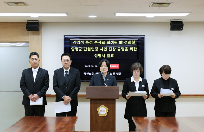 이번 성명에는 윤순옥 의원(대표), 황선호 의장, 오혜자 부의장, 송진욱·지민희 의원 등 총 5명이 참여했다. 이들은 “고인의 명예 회복과 양평군 공직자들의 안전을 위해 끝까지 싸우겠다”며 다시 한번 고인의 명복을 기원했다.