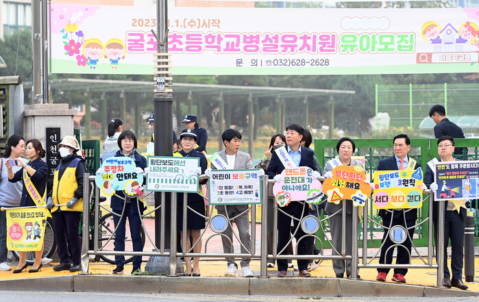 [인천=문찬식 기자] 인천 부평구가 지난 26일 인천굴포초등학교 앞 등굣길에서 교통 유관단체 및 관련 기관들과 어린이 교통안전 릴레이 캠페인을 진행했다.