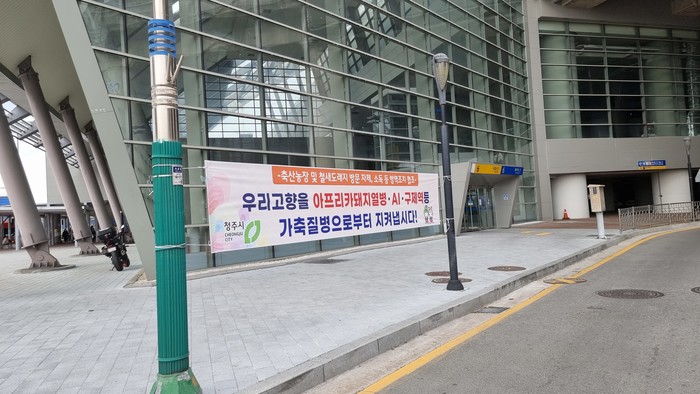 청주시는 축산농가와 축산관계시설에 대해서 마을방송(87개소), SMS문자 발송을 통해 일제 소독(1차 1. 28./ 2차 2. 3) 독려 및 차단방역을 철저히 하도록 지도·홍보하고, 지역 내 주요 교통시설(버스터미널, 오송 KTX역, 청주공항 등)에 현수막을 설치하는 등 축산관계자 및 일반 시민들에게 차단방역 수칙 홍보에 온힘을 다하고 있다.