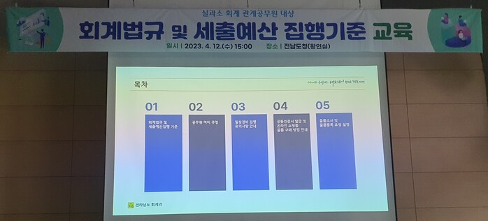 | ▲ 회계법규 및 세출예산 집행기준 교육 준비 장면(출처=전남도) |