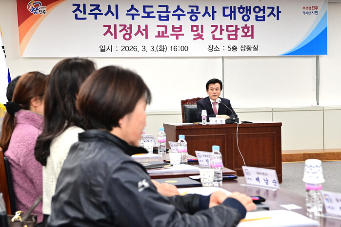 진주시는 지난 3일 시청 상황실에서 수도 급수공사 대행사업을 수행할 신규 대행업체 10곳을 선정해 지정서를 교부했다고 밝혔다.