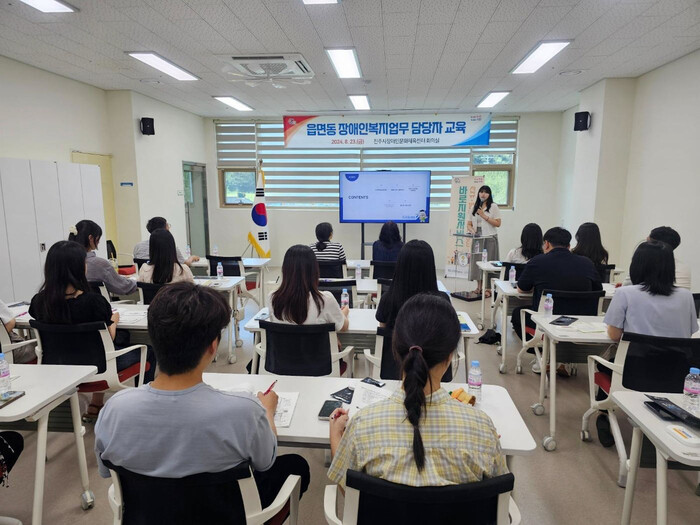 이번 교육은 읍면동 장애인복지업무 담당자의 역량강화와 실무에 필요한 지식 습득을 위해 장애인 등록 및 서비스 신청 업무, 신규·발굴 등록 장애인 바로지원서비스 사업, 수요자 중심의 맞춤 상담 등의 내용으로 진행됐다.