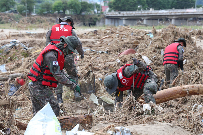가평군에 따르면 30일 오전 9시 현재 집중호우로 인한 인명 피해는 사망 5명, 실종 2명으로 집계됐다. 실종자는 이 시간까지도 발견되지 않아 안타까움을 더하고 있다. 군부대와 경찰, 소방서 등은 실종자 수색을 가평군 상면 덕현리 다원2교 일대와 경기도 김포 지역까지 범위를 확대해 진행중에 있다. 실종자 수색에는 29일 기준 소방, 경찰, 군인 등 총 1,014명과 드론‧헬기‧보트 등 장비 131대가 투입됐다.