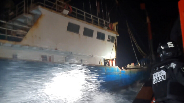 검색 과정에서 일부 선원 흉기들고 저항...너울성 파도로 등선 중 경찰관 부상입기도