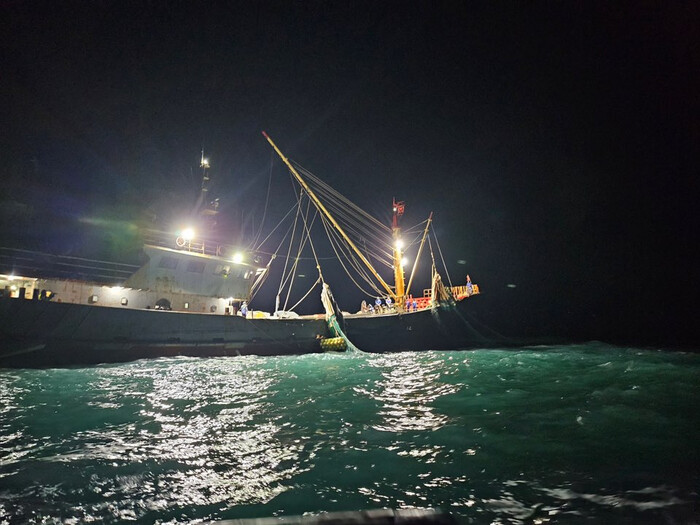 목포해양경찰서(서장 채수준)는 지난 24일 19시경 전남 신안군 가거도 남서방 약 103km 해상(한·중 잠정조치수역 동측 한계선 내측 약 5.5km)에서 불법조업을 하던 중국 국적 범장망 어선 2척을 약칭 ‘경제수역어업주권법위반’혐의로 나포했다고 25일 밝혔다.