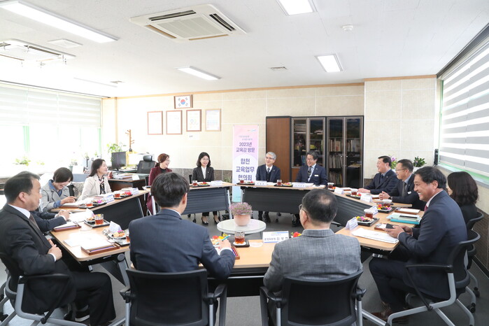 지역 현안 간담회는 △작은학교 살리기 사업 선정 과정 및 학교 역할(묘산초 교장 최혁) △향후 일정 및 지원 방안(합천군수 김윤철) △협력적 교육 거버넌스 체제 형성 방안 등의 순으로 이루어졌다.