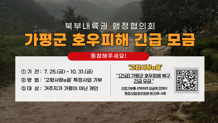 한편, 이번 지정기부 캠페인은 각 시군 홈페이지와 지역 홍보 채널을 통해 적극 안내되고 있다. 가평군은 모금된 기부금을 활용해 침수 가옥 복구, 취약계층 지원, 기반시설 정비 등 실질적인 복구 사업에 투입할 계획이다.