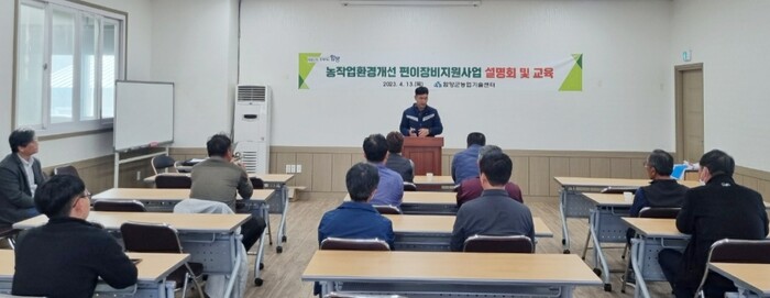 함양군은 13일 오후 3시 중부권 농기계임대사업소 교육장에서 사업추진위원 등 25명이 참석한 가운데 컨설팅 전문가 천안 나사렛대학교 손병창 교수를 강사로 초빙해 ‘농작업 환경개선 편이장비지원사업 설명회 및 시연회 교육’을 개최했다.