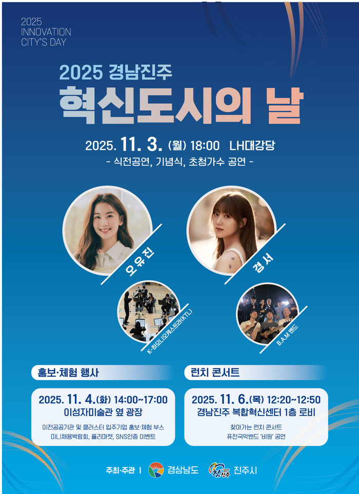 ‘2025 경남진주 혁신도시의 날’행사가 11월 3일부터 9일까지 경남 진주 혁신도시 일원에서 열린다.